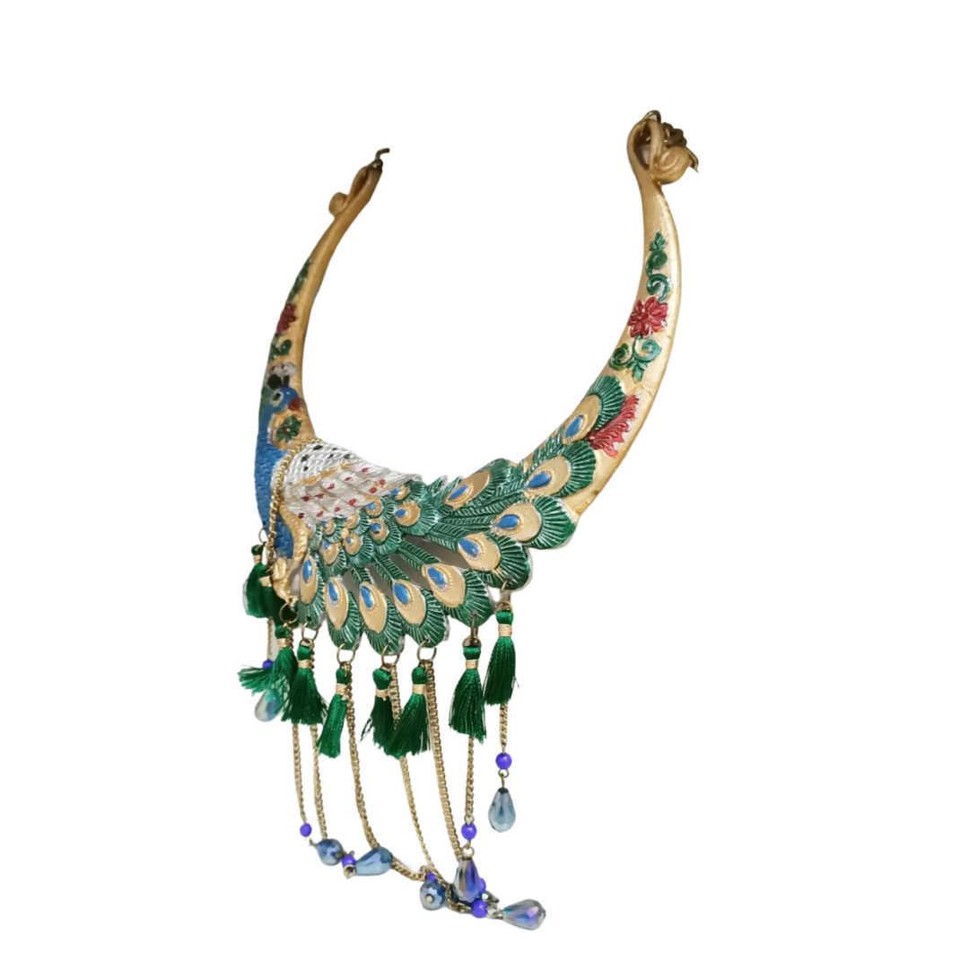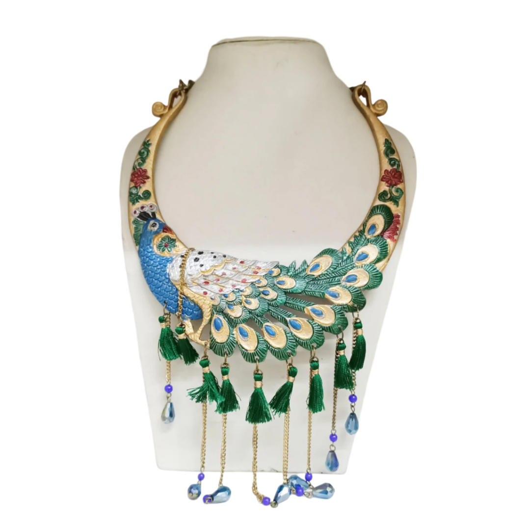 Aluminum necklace with peacock design