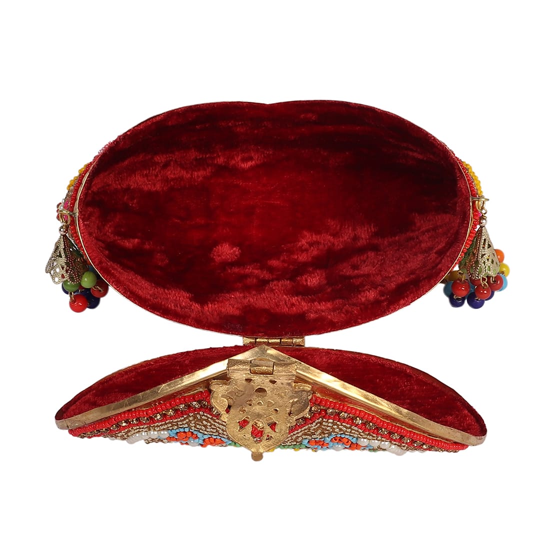 This is a multi embroidery ladies purse which is made by brass and inside of this purse there is velvet and outside is hand embroidery of a flower which looks so beautiful and this can be carried anywhere because this is a unique handbag.