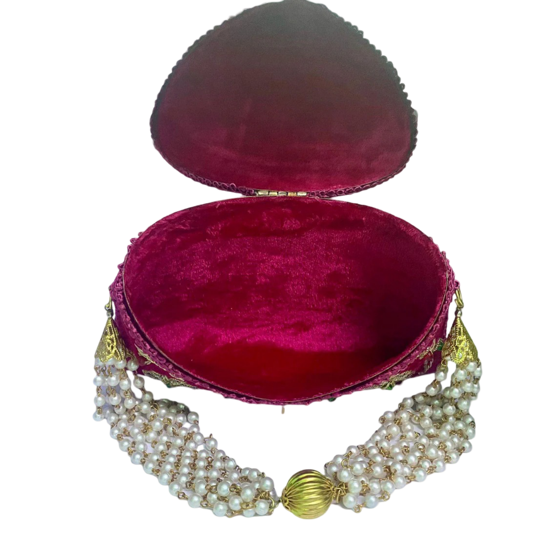 This is flower embroidery ladies purse pink color which is made by brass and inside of this purse there is used of velvet and outside is handmade flower embroidery which looks very beautiful and you can carry it at any occasion like weddings, parties, etc.