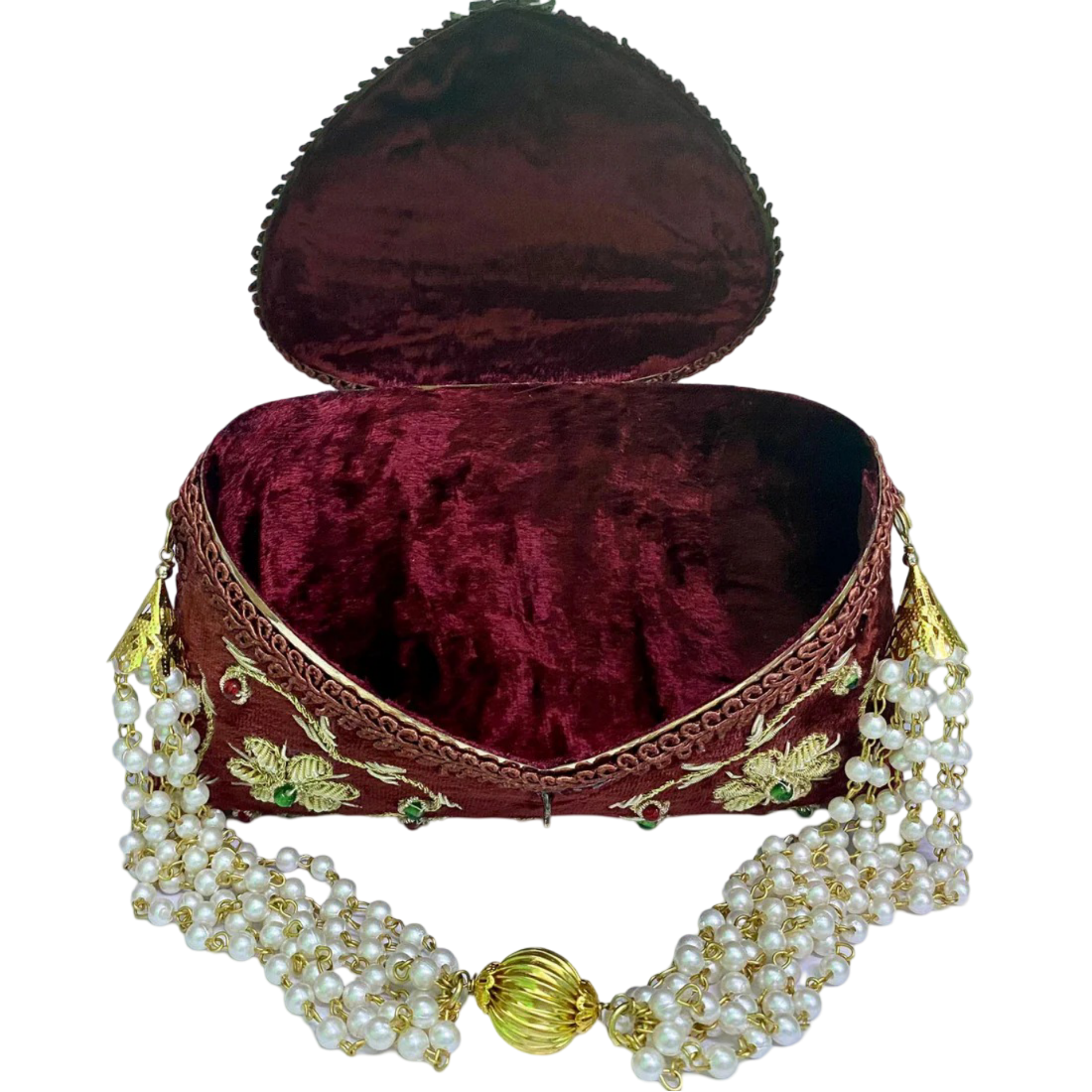 This is flower embroidery ladies purse rust color which is made by brass and inside of this purse there is used of velvet and outside is handmade flower embroidery which looks very beautiful and you can carry it at any occasion like weddings, parties, etc.