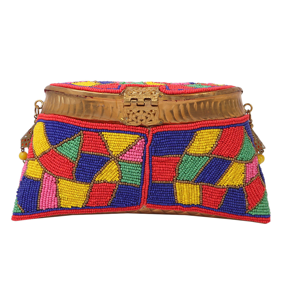 This is gumetic embroidery purse which is made by brass and inside of this there is used of velvet and outside is gumetic hand embroidery and this looks very beautiful and it can be carried anywhere like weddings, parties, etc.