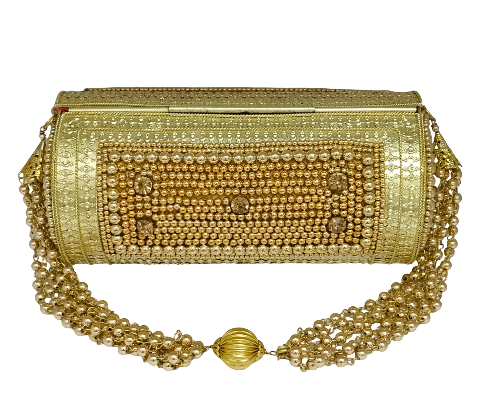 Discover elegance redefined with this handcrafted iron pearl golden purse — a masterpiece that perfectly balances charm and craftsmanship. The sturdy iron body is complemented by a red velvet interior, offering a soft touch within its bold design.